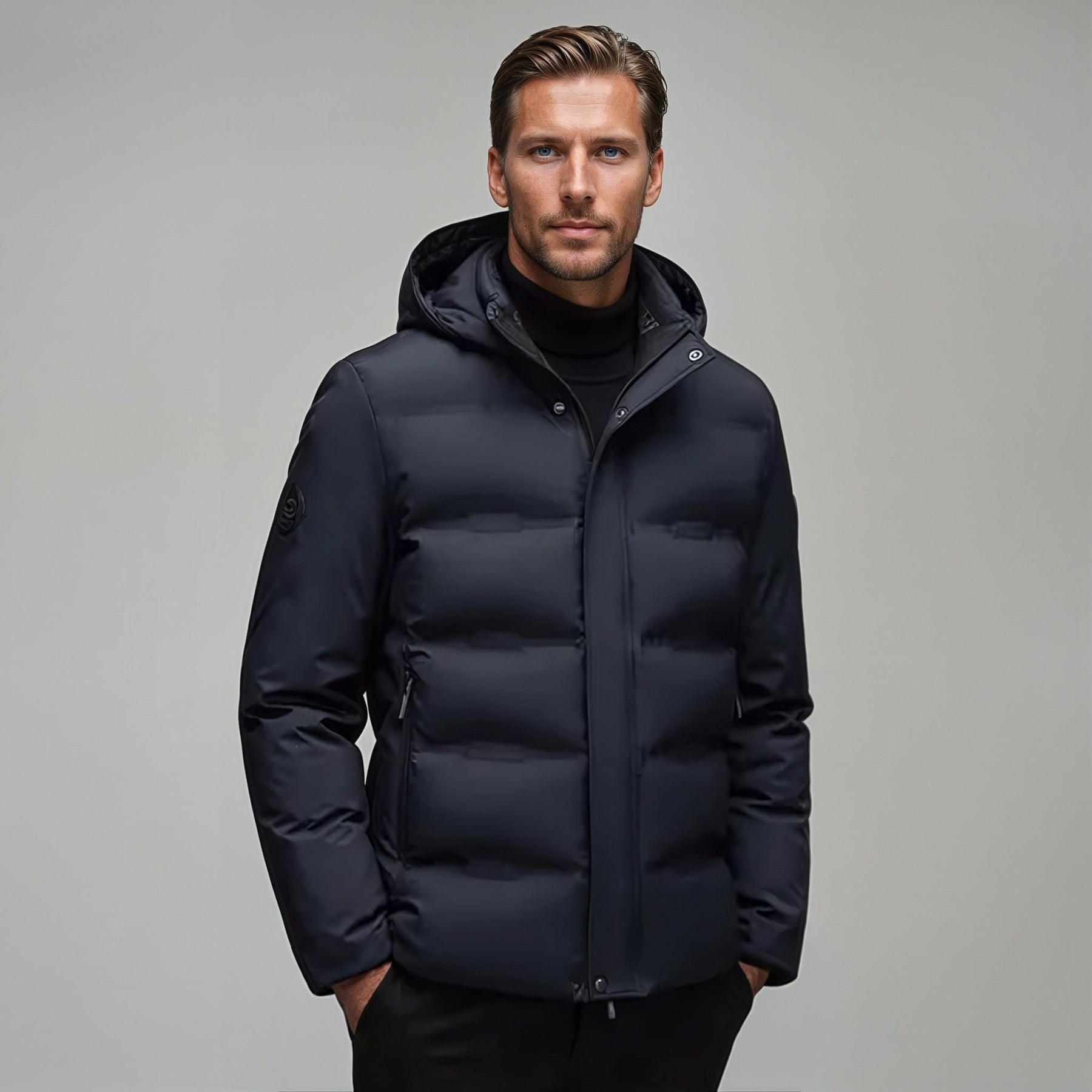 This sleek black puffer jacket exudes contemporary style while delivering maximum comfort and insulation. Its versatile design makes it a winter essential for staying warm and fashionable.